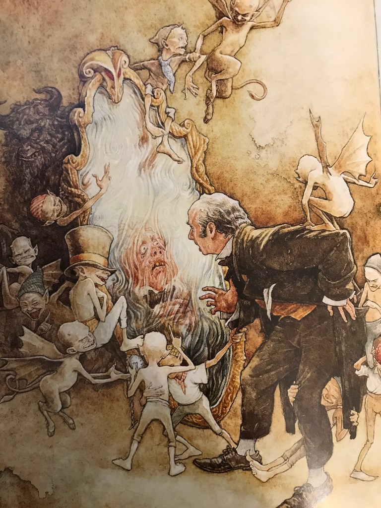 “il diavolo.” Un giorno era proprio di buon umore, perché aveva costruito uno specchio che aveva la facoltà di far sparire immediatamente tutte le cose belle e buone che vi si rispecchiavano, come non fossero state nulla; quello che invece era brutto e che appariva orribile, risaltava ancora di più.