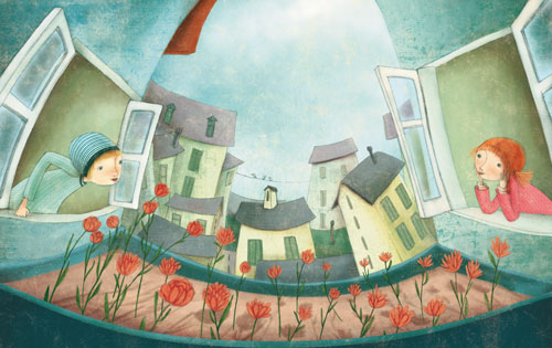 Non erano fratelli, ma si volevano bene come se lo fossero stati. I genitori erano vicini di casa, abitavano in due soffitte nel punto in cui i tetti delle due case confinavano e le grondaie si univano si affacciava da ogni casa una finestrella; bastava solo scavalcare la grondaia, per poter passare da una finestra all’altra. I genitori avevano messo lì fuori ognuno una grossa cassa di legno e in questa crescevano le erbe aromatiche che usavano in cucina, e un piccolo roseto…