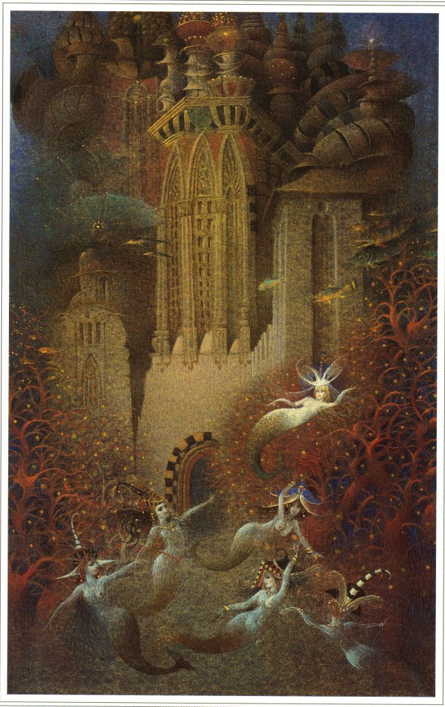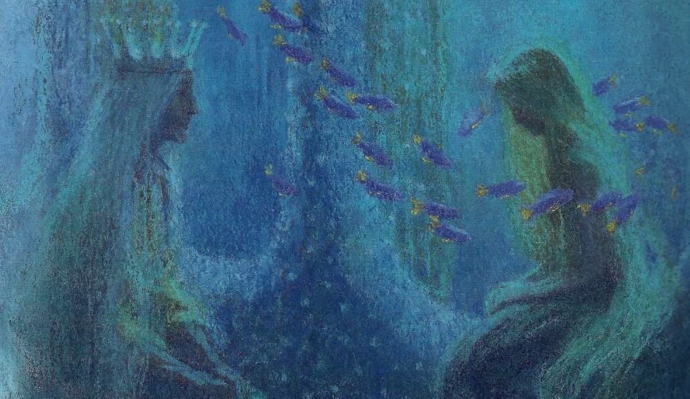 Si comincia con una descrizione accurata del fondale marino e dei suoi abitanti, della loro vita, ma in particolare ci vengono presentate le principesse, figlie del re vedovo. Le sei bambine sirenette vengono educate dalla nonna e tra esse una, la più giovane, risalta per semplicità e bellezza. Ad ogni bambina è dato un pezzo di terreno da coltivare e mentre le altre cinque giocano, creano forme diverse al proprio piccolo appezzamento di terra, “la più giovane aveva fatto la sua rotonda, proprio come il sole e aveva solo fiori che splendevano rossi come il sole.”[1] La piccola Sirenetta ama il sole, ama la stella più grande, calda e luminosa che c’è e ne riprende la forma, come a cercare di imitarla, di farla sua.
