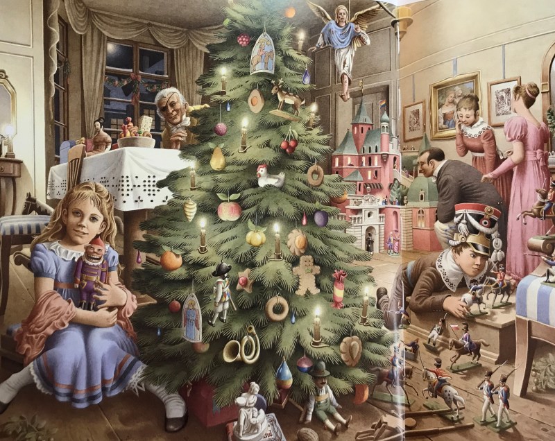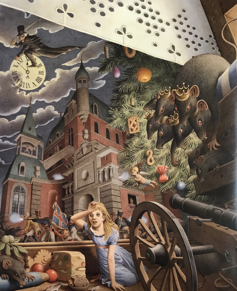 “Da quando la bambina aveva scoperto che il suo Schiaccianoci in realtà era il giovane Drosselmeier, il nipote del Consigliere della Corte d’appello, non lo portava più in braccio, e non lo abbracciava né lo baciava più, per una sorta di pudore preferiva nemmeno toccarlo tanto; ora però lo prese con molta cautela dal ripiano…