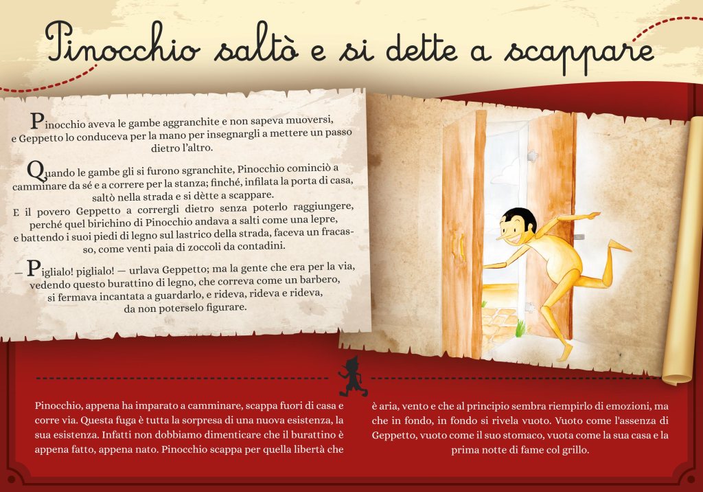 La mostra è stata pensata riprendendo le frasi di Collodi, per incentivare la lettura del testo originale e valorizzare una tradizione tutta italiana. Le illustrazioni vogliono rivolgersi a bambini di ogni età, per questo la scelta va su due illustratori con due sensibilità diverse. I commenti ad ogni pannello sono pensati per bambini che sappiano già leggere e per gli adulti che sono curiosi di incontrare Pinocchio, quello vero e vivo della fiaba di Collodi.